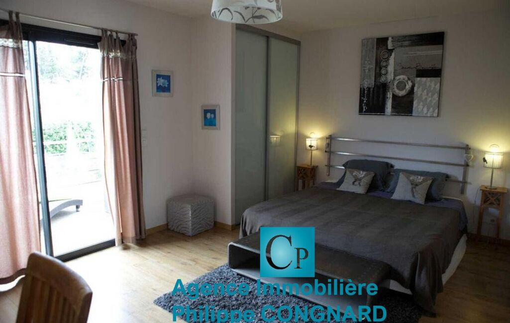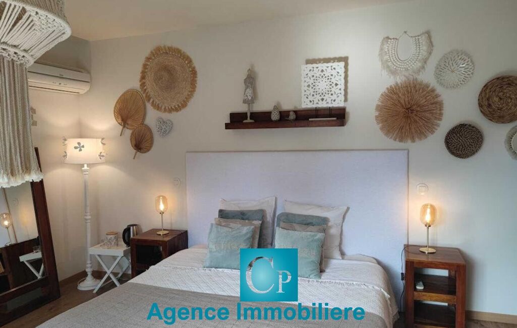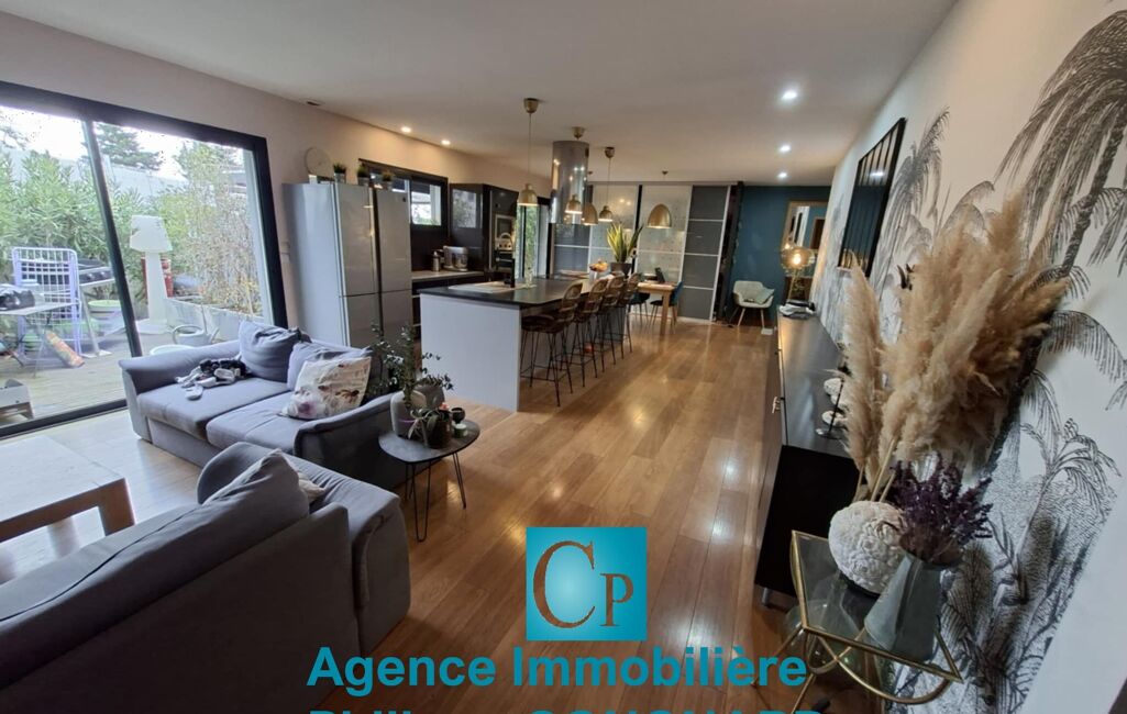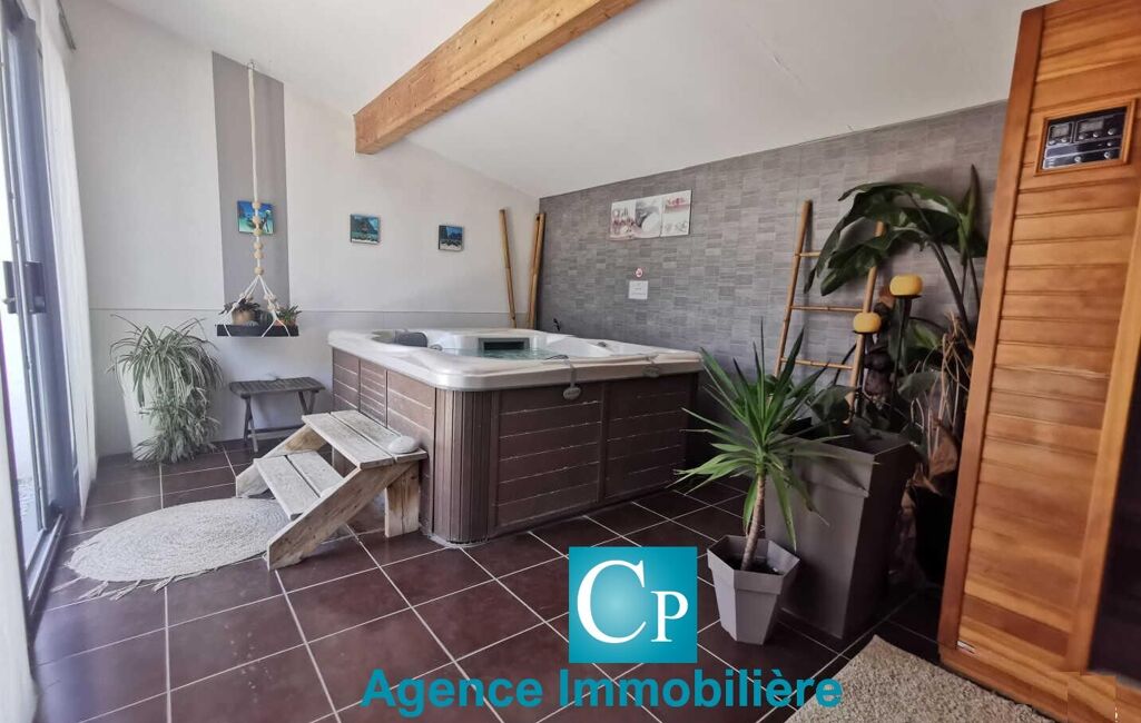 Nissan lez Ensérune : Entre Béziers et Narbonne, dans une résidence type "condominium", une villa de standing en plain pied de type 4 (130 m² ), avec dépendance (140 m²) composée de 4 chambres d 'hôtes de 25 m² chacune avec leur terrasse privative, salle d 'eau et toilettes séparées et une belle salle à manger commune. Surface habitable totale de 270 m². Parcelle de 1360 m². Architecture moderne, terrasses, jacuzzi, sauna et piscine avec un superbe espace paysagé. Très belles prestations. L'activité "chambres d 'hôtes" génère un très beau chiffre d 'affaire depuis 17 ans. Climatisation réversible dans la villa et les chambres d 'hôtes. Salon séjour cuisine de 55 m² dans la villa, 3 chambres dont une belle suite parentale. PRIX : 779 000€ DPE : B Philippe : 06 26 59 22 20 www.philippecongnard.com.