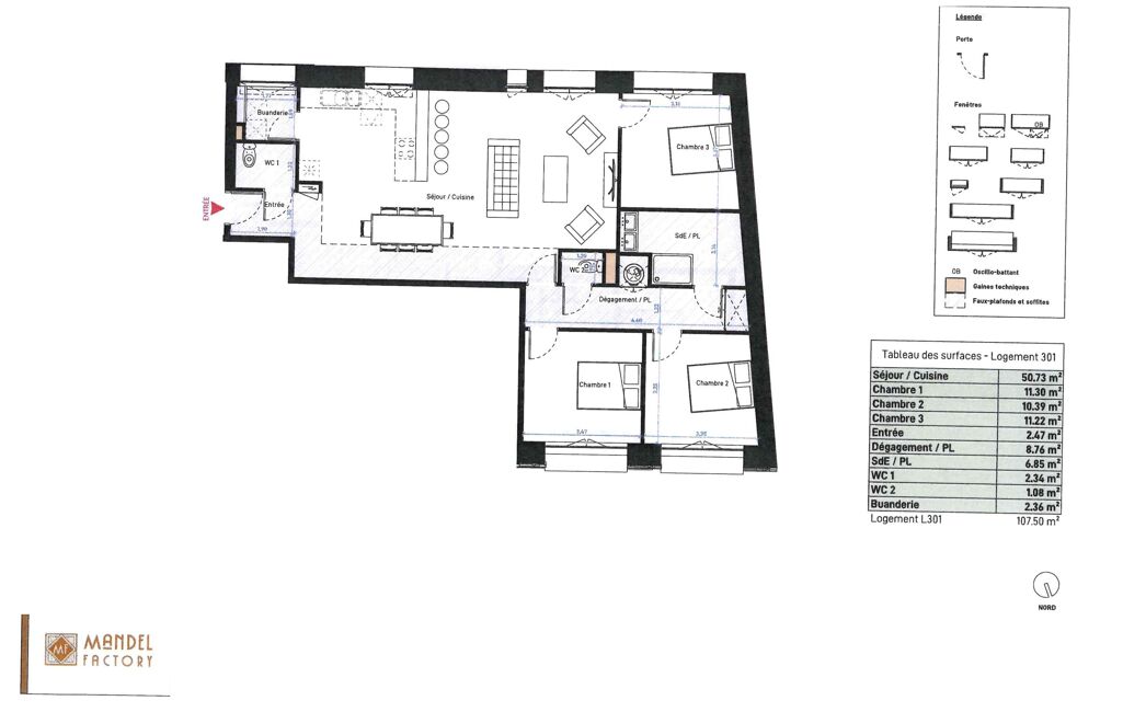- Surface habitable : 107 m²