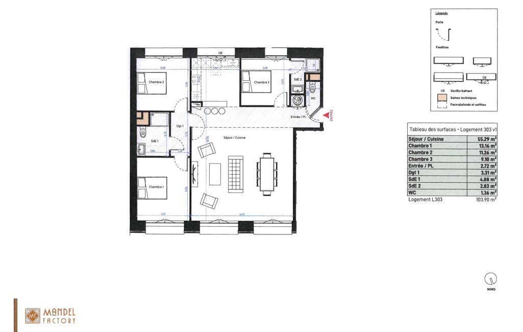 Béziers : Proche place général De gaulle, appartement de type 4 neuf sis au 3 éme et dernier étage d 'un immeuble entièrement rénové, superficie "loi carrez" de 103.90 m², salon séjour, cuisine ouverte, trois chambres, deux salles d'eau dont une privée à la chambre 3. Style "art déco" pour l 'immeuble et confort moderne pour l 'appartement très stylisé. Livraison 1 er trimestre 2027. Deux emplacements de stationnement privatifs inclus. Vente en état futur d 'achèvement avec "frais de notaire" réduits. ℹ️ Les informations sur les risques auxquels ce bien est exposé sont disponibles sur : www.georisques.gouv.fr Nombre de lots de copropriété : 25 dont 5 appartements Charges de copropriété : 960 / an Prix : 396 000€ Pas de DPE : en cours de réhabilitation Philippe : 06 26 59 22 20 www.philippecongnard.com.